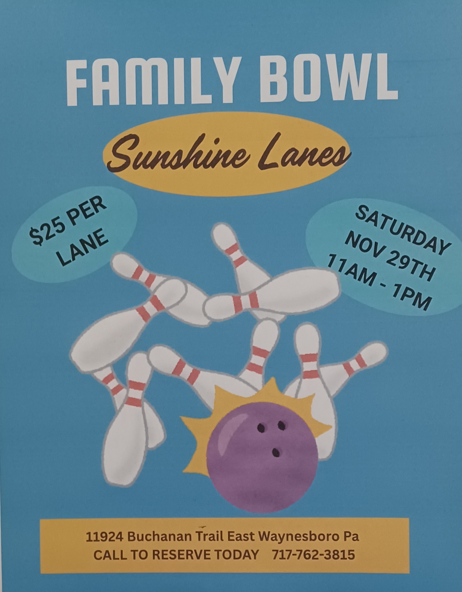 You’ll know from the moment you walk in the door that you’re about to have a great time at Sunshine Lanes! From clattering pins, to the rockin’ sounds of the jukebox, to the laid-back atmosphere—we’re a place Waynesboro, PA residents come to enjoy themselves. We’ll make sure you do too. Just tell us what you need and we’ll make it happen, including event planning, adaptive bowling equipment, food and drink, and more.Keep on Rollin’
