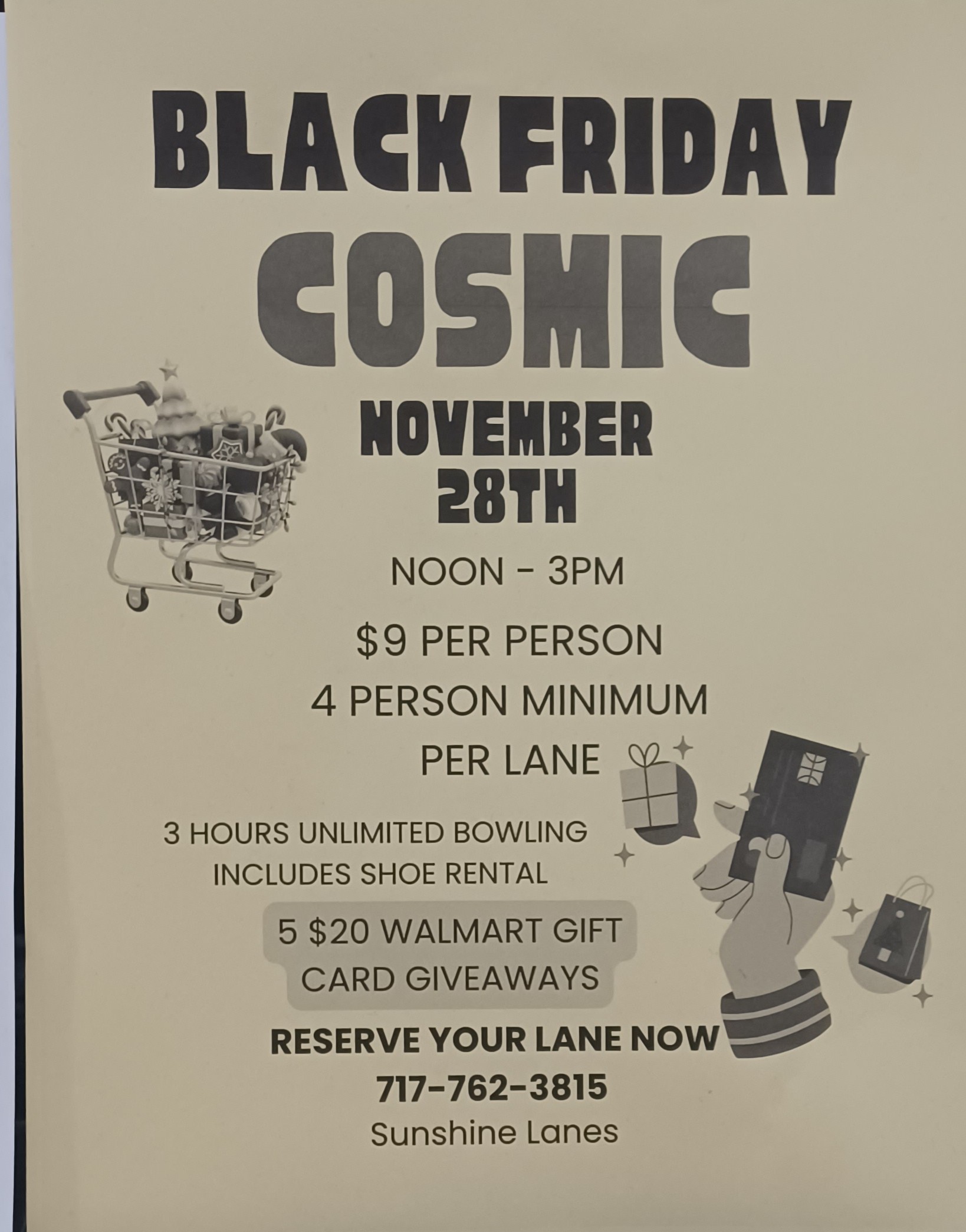 Book any and all bowling alley events at Sunshine Lanes! Contact our local bowling alley today for birthday parties, fundraisers, league play and much more. We’ll make sure there’s a lane open for you. Call now!