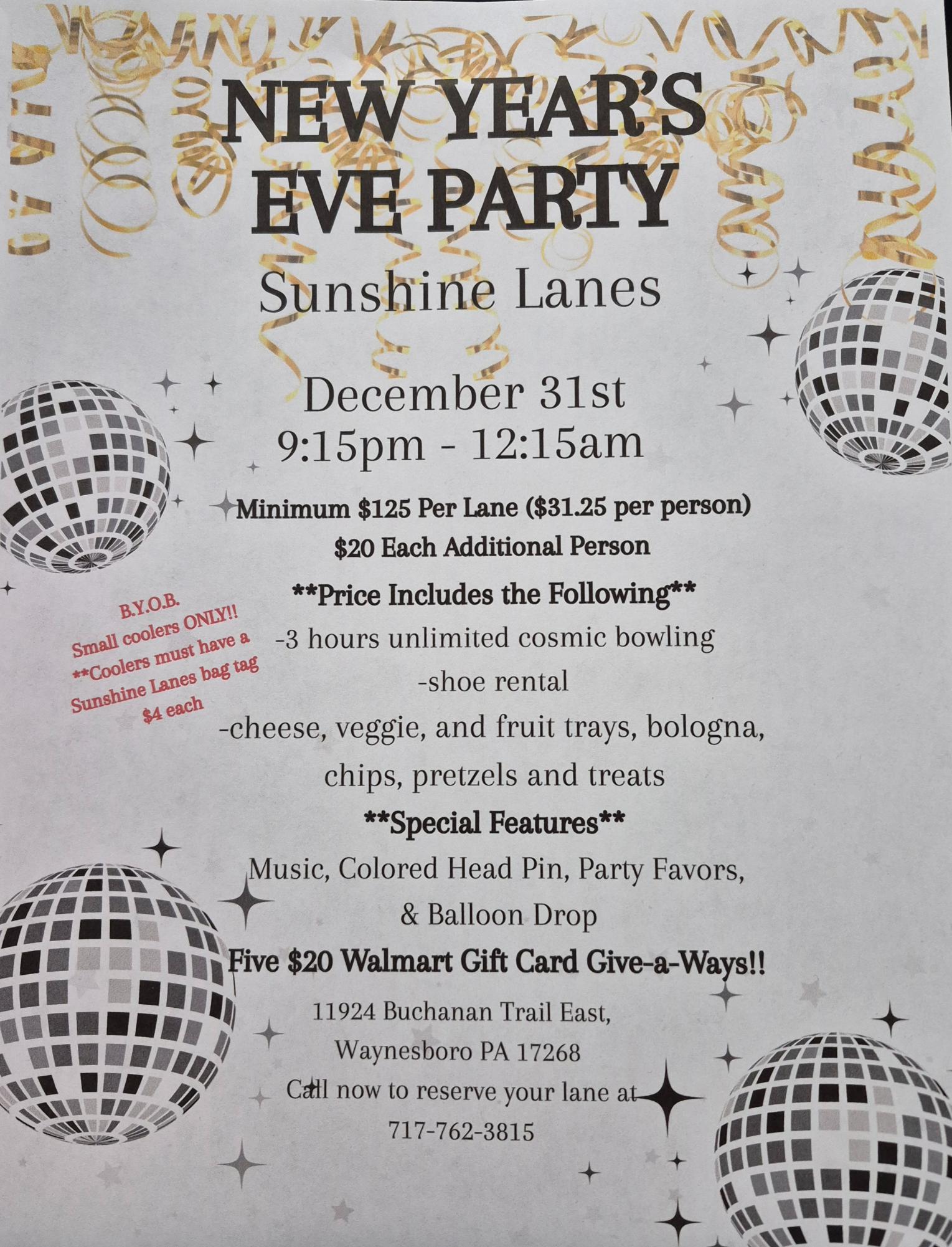From single games to league competitions, Sunshine Lanes is the place to bowl your heart out! We host open bowling, as well as league play and a variety of special bowling alley events throughout the year, including holiday parties, birthday celebrations, cosmic bowling and more! All ages and skill levels are welcome, and it’s always BYOB.